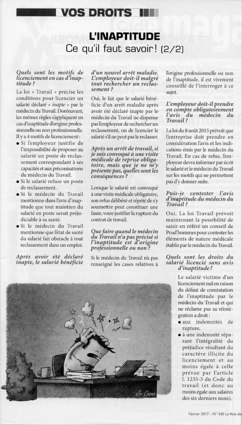Cette notion est totalement différente de l’invalidité qui est du ressort du droit de la protection sociale. L’invalidité ne s’oppose pas à l’employeur, ni au Médecin du Travail et n’a aucune incidence sur le contrat de travail.